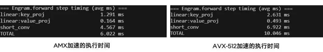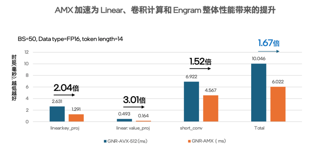 图5 用英特尔® AMX加速Engram模块中Linear和卷积计算的性能表现