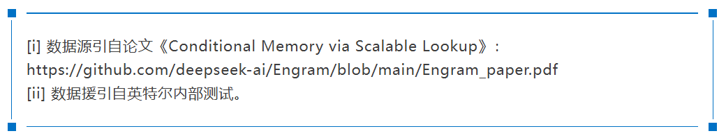 同时基于这一设计,Engram能充分利用CPU平台对大容量内存的有效支持,将“超大规模记忆”部分卸载至CPU平台上。论文数据提到:“将 1000 亿参数的表卸载至CPU内存时,仅产生可忽略的开销(小于 3%)。” 这表明,Engram 能有效突破GPU显存限制,为大规模参数扩展提供支持,从而为大模型用户带来显性收益。i