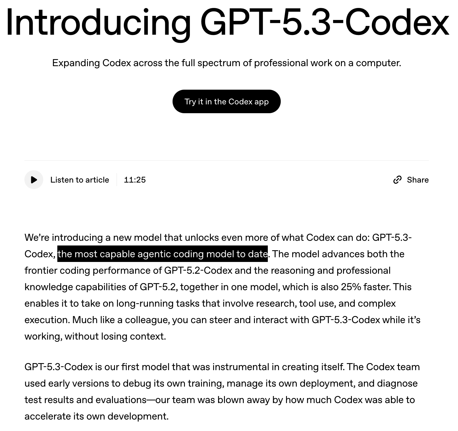 OpenAI 宣布推出 GPT-5.3-Codex,官方称其是迄今为止最强大的 agentic coding 模型,旨在将 AI 编程能力扩展到完整的专业工作流程中。