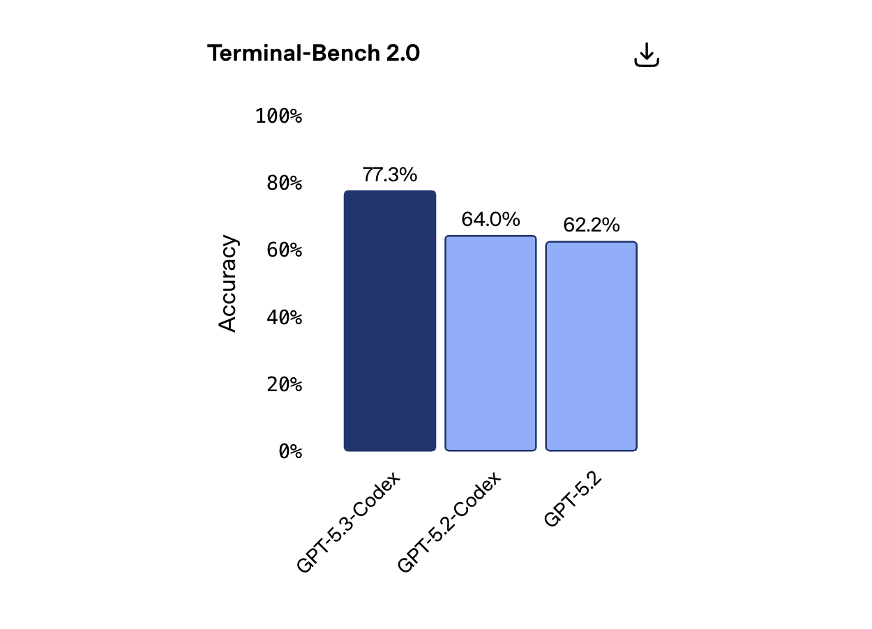 - 性能全方位升级:GPT-5.3-Codex 在多个行业标准基准测试中取得领先,包括 SWE-Bench Pro、Terminal-Bench 和 OSWorld 等,证明它不仅能精通代码生成,还能执行复杂任务和理解更长期的上下文。