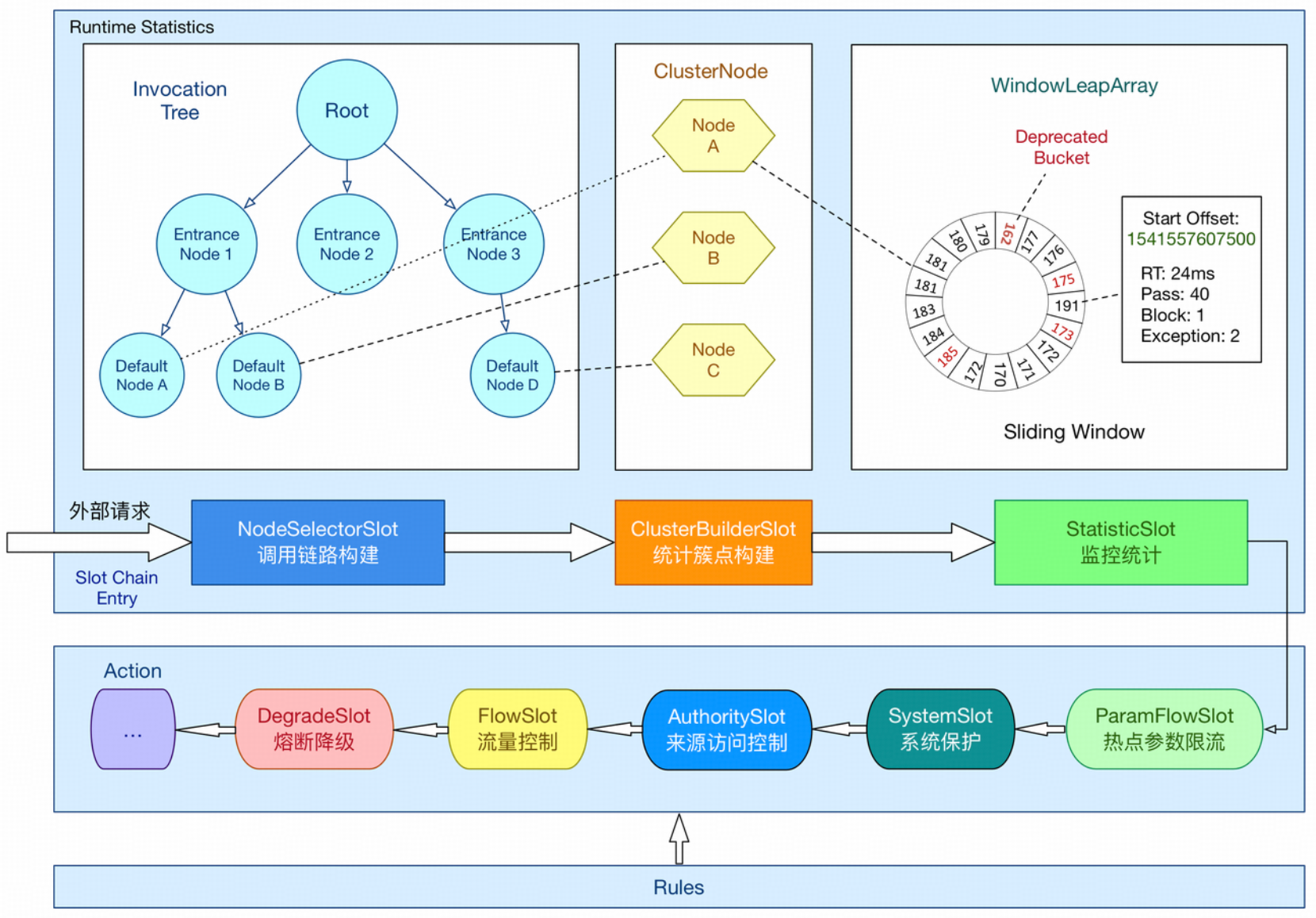 - 使用 ProcessorSlotChain 责任链模式组合多个功能插槽;