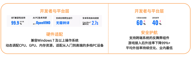英特尔正通过英特尔® Bridge技术与Celadon,从底层提升跨架构指令编译的兼容性与开发效率。通过与腾讯应用宝深度合作,运用虚拟化引擎、高性能渲染框架等五大关键技术,实现了移动应用在PC大屏上的原生化运行。