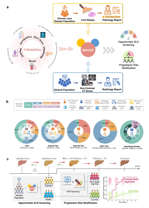 阿里巴巴达摩院近日联合中国医科大学附属盛京医院、南京大学附属鼓楼医院等机构研发出脂肪肝筛查 AI 模型 MAOSS,通过平扫CT影像、血清指标等常见检查,不仅可精准筛查肝脂肪分期,更能评估肝纤维化进展,将高风险患者检出率从16.6%大幅提升至52.4%。相关论文发表在《自然-通讯》(Nature Communications)上。