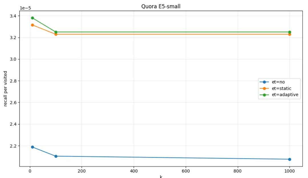 因此,我们意识到固定阈值隐含了关于收敛行为的全局假设,而我们可以让 HNSW 更好地适应不同的动态特性。