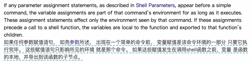 详见:Bash - 行内环境变量,Bash 是标准的 Shell 实现,其他 Shell 如 Zsh 都兼容其行为。