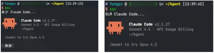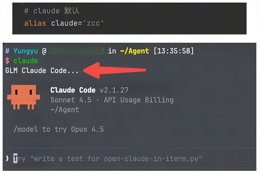 这样输入claude 时,默认使用智谱 GLM 模型。