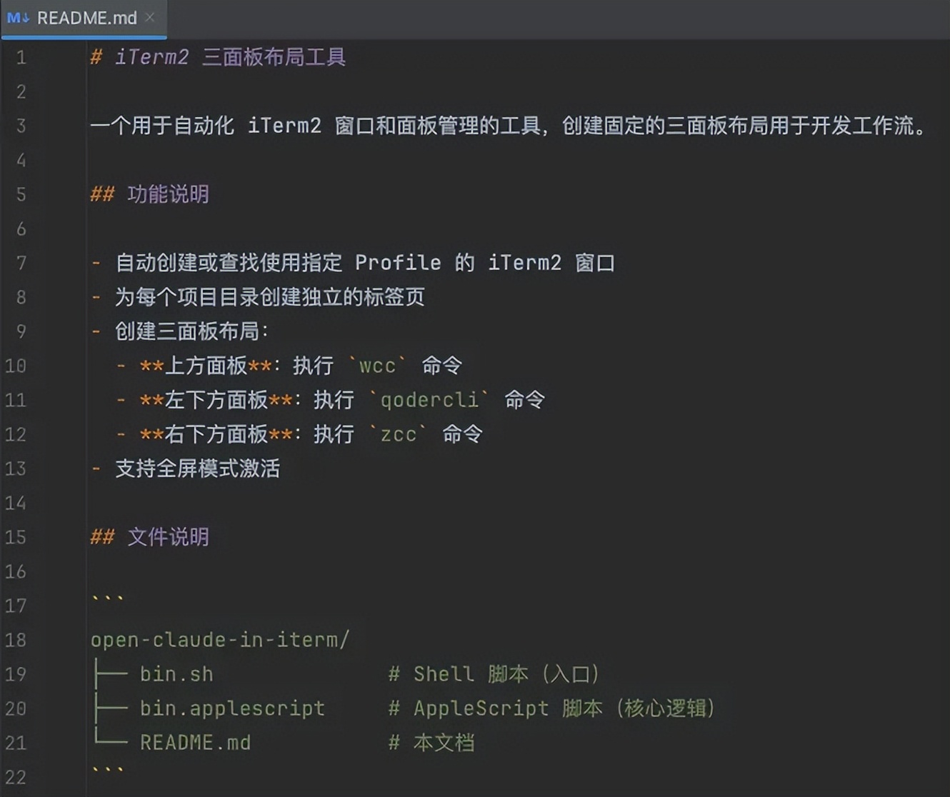 ### 1. Shell 脚本 (open-claude-in-iterm.sh)