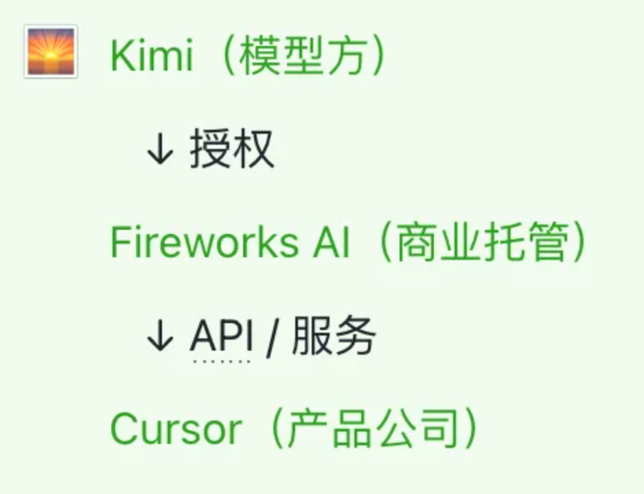 Fireworks 通过与 Kimi 的商业合作获得模型分发与使用权,并在其平台上提供推理与强化学习能力。像 Cursor 这样的公司,通过采购 Fireworks 的服务来训练或构建自己的模型能力,这一过程在商业链路上是完全合规的。