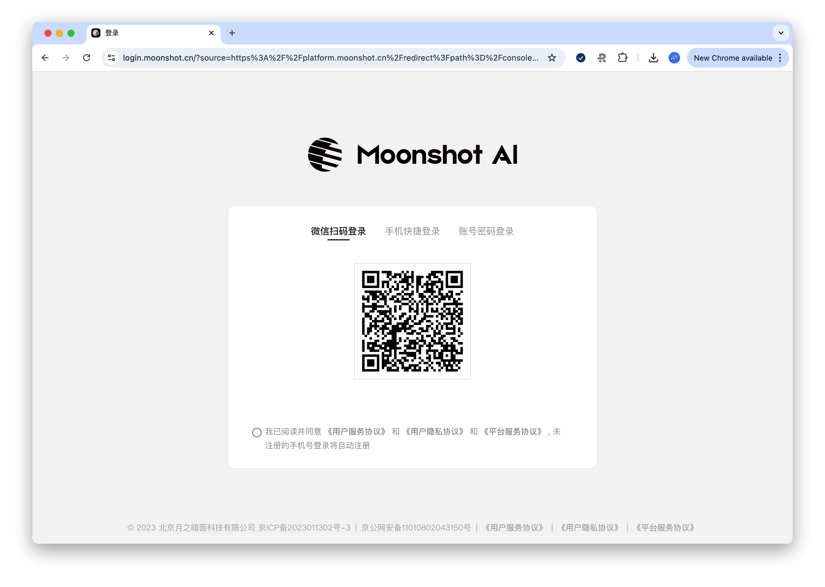 - 登录 Kimi 网站获取 API Key,访问 https://platform.moonshot.cn/console 点击登录