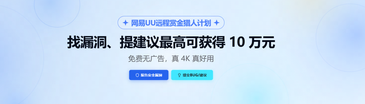 安全是远程控制工具的生命线。网易UU远程推出「赏金猎人计划」,主动邀请全网技术专家与白帽极客开展深度漏洞挖掘。UU远程凭借免费无广告、流畅高清的使用体验收获大量用户口碑,在此基础上,本次赏金计划进一步推动产品安全升级与体验优化。活动既面向专业人员挖掘系统漏洞,也欢迎广大用户提交BUG与实用建议,通过从被动防护转为主动排查优化,持续提升产品安全水平,为用户跨设备远程使用筑牢更可靠、更值得信赖的安全保障。