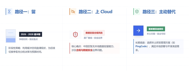 真正的区别在于:“留”是在争取时间;“上 Cloud”是在顺着原厂路线继续走;“主动替代”是在重新选择未来几年的协作底座。