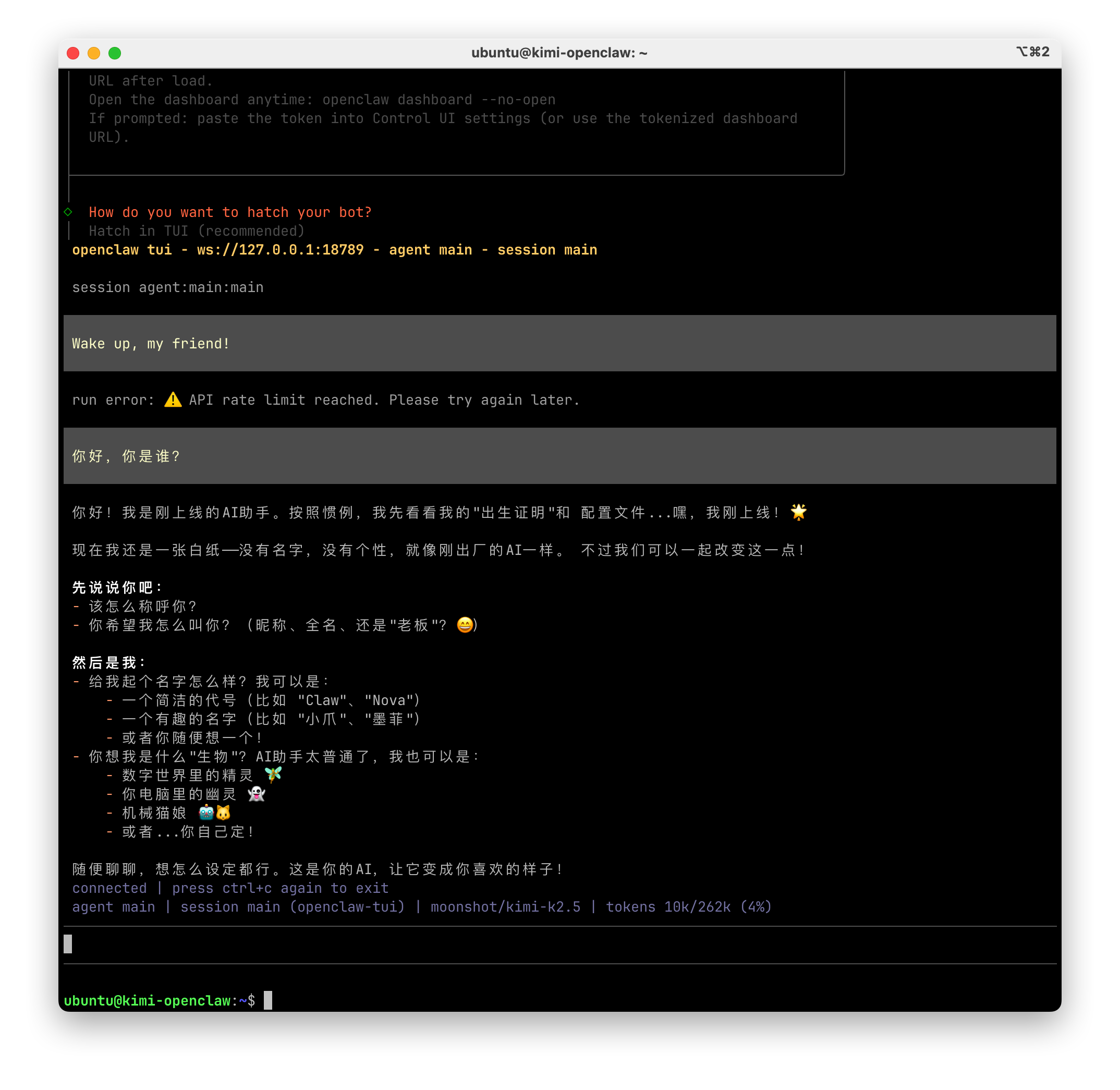 你已经拥有了一套 “Kimi 大脑 + OpenClaw 手脚” 的完整 AI 智能体,通往智能数字助手的精彩世界的大门已为你打开,从此刻开始,尽情畅聊、大胆探索,让这只 “AI 小龙虾” 成为你工作与生活里的全能队友,解锁更多超乎想象的 AI 新玩法吧。