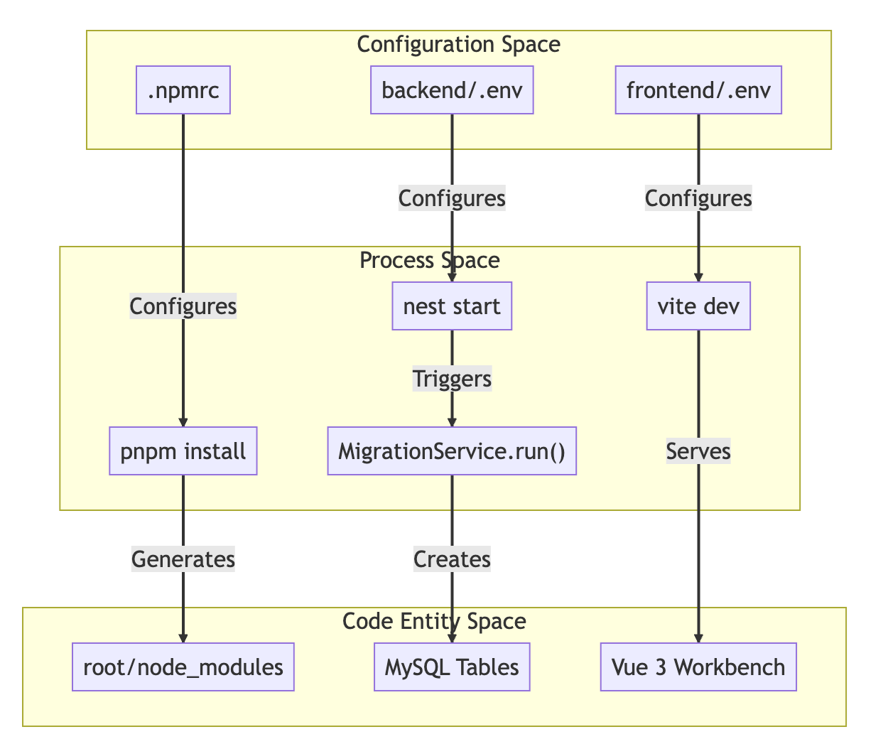 整个平台基于 Vue 3 + TypeScript + NestJS 构建,采用单仓库(monorepo)架构,将前端、后端、模板和文档统一管理。
