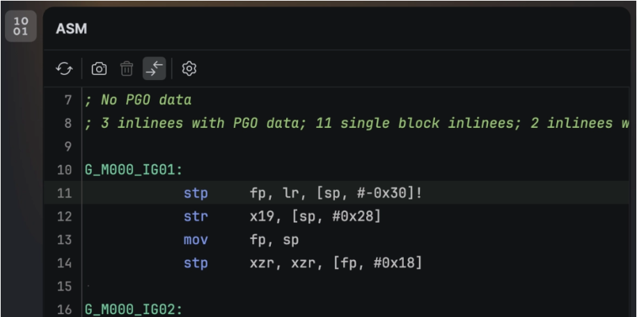 Rider 现在允许在 IDE 中直接检查 C# 代码的本机输出。通过全新的 ASM 查看器,可以探索由 JIT、ReadyToRun 和 NativeAOT 编译器生成的机器码,助你深度洞察程序性能与底层运行行为。