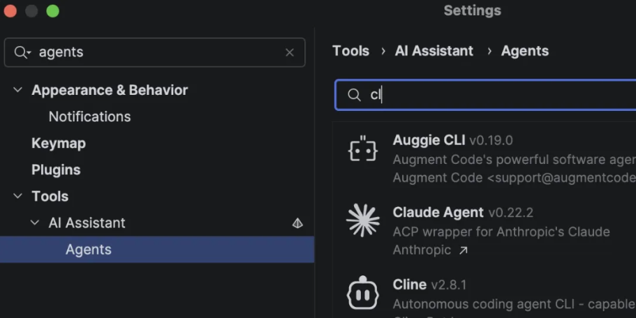 通过全新的 ACP 注册表,可以一键发现并安装 AI 代理(AI Agents)。除了 Junie、Claude Agent 和 Codex 等内置选项外,现在还可以协同使用 GitHub Copilot、Cursor 以及其他外部代理。