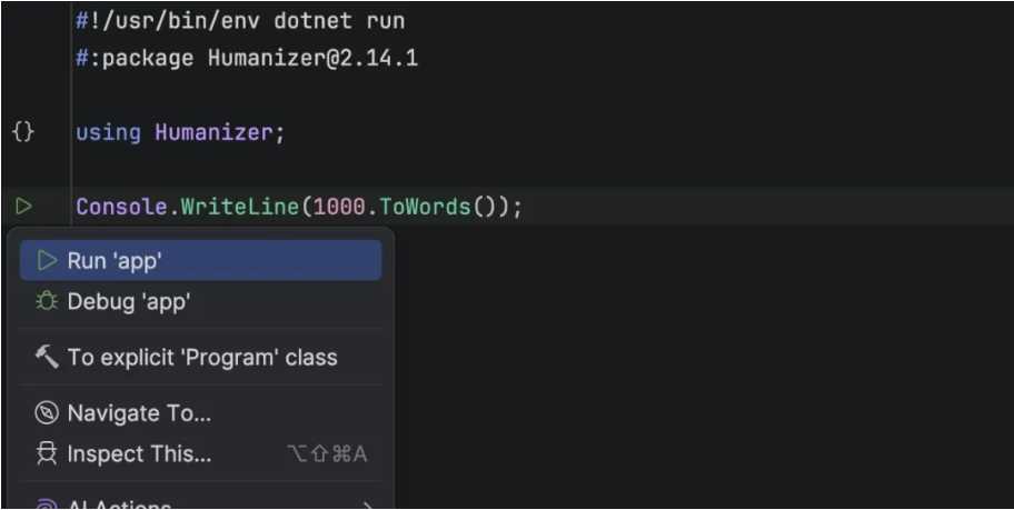 现在可以直接在 Rider 中打开并运行单文件 C# 程序,无需创建任何项目文件。这极大简化了以下场景的操作: