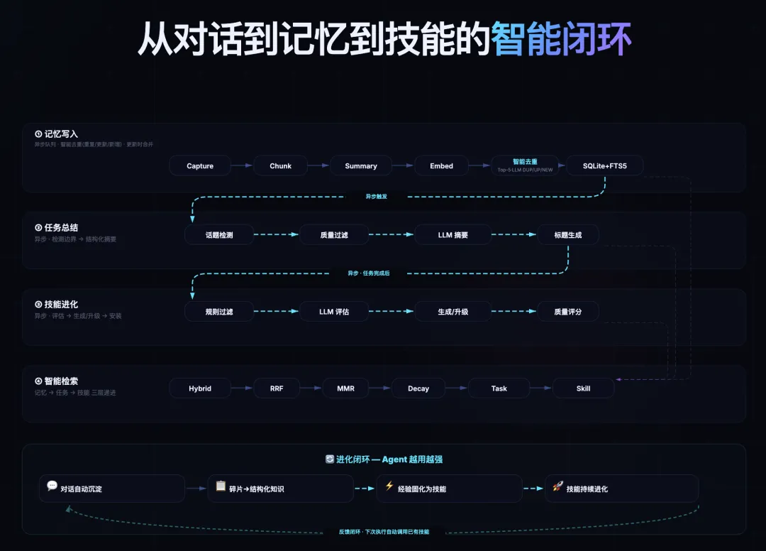 从对话到记忆,从记忆到技能,形成持续学习闭环。