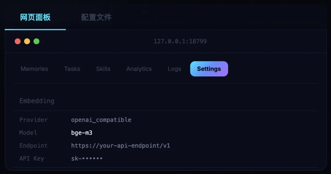 启动后,打开 http://127.0.0.1:18799 即可访问 Memory Viewer。