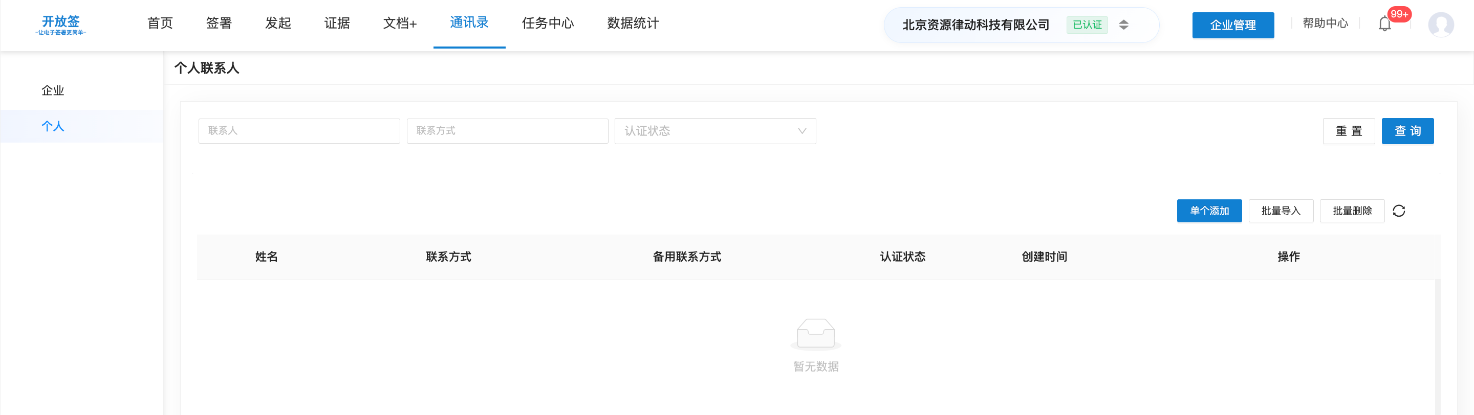 新增企业级通讯录,在发起签署时可快速、准确地选择与填写签署方信息,提升操作效率。