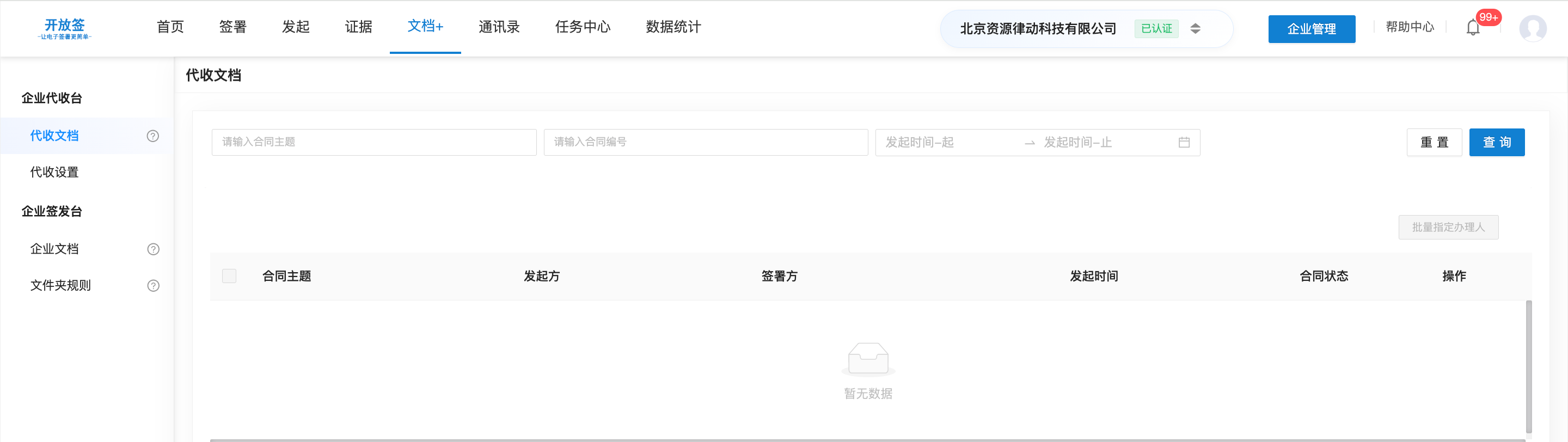 1、代收文档:集中处理“待分配经办人”的合同(经办人未指定或未加入企业),并支持直接指派。