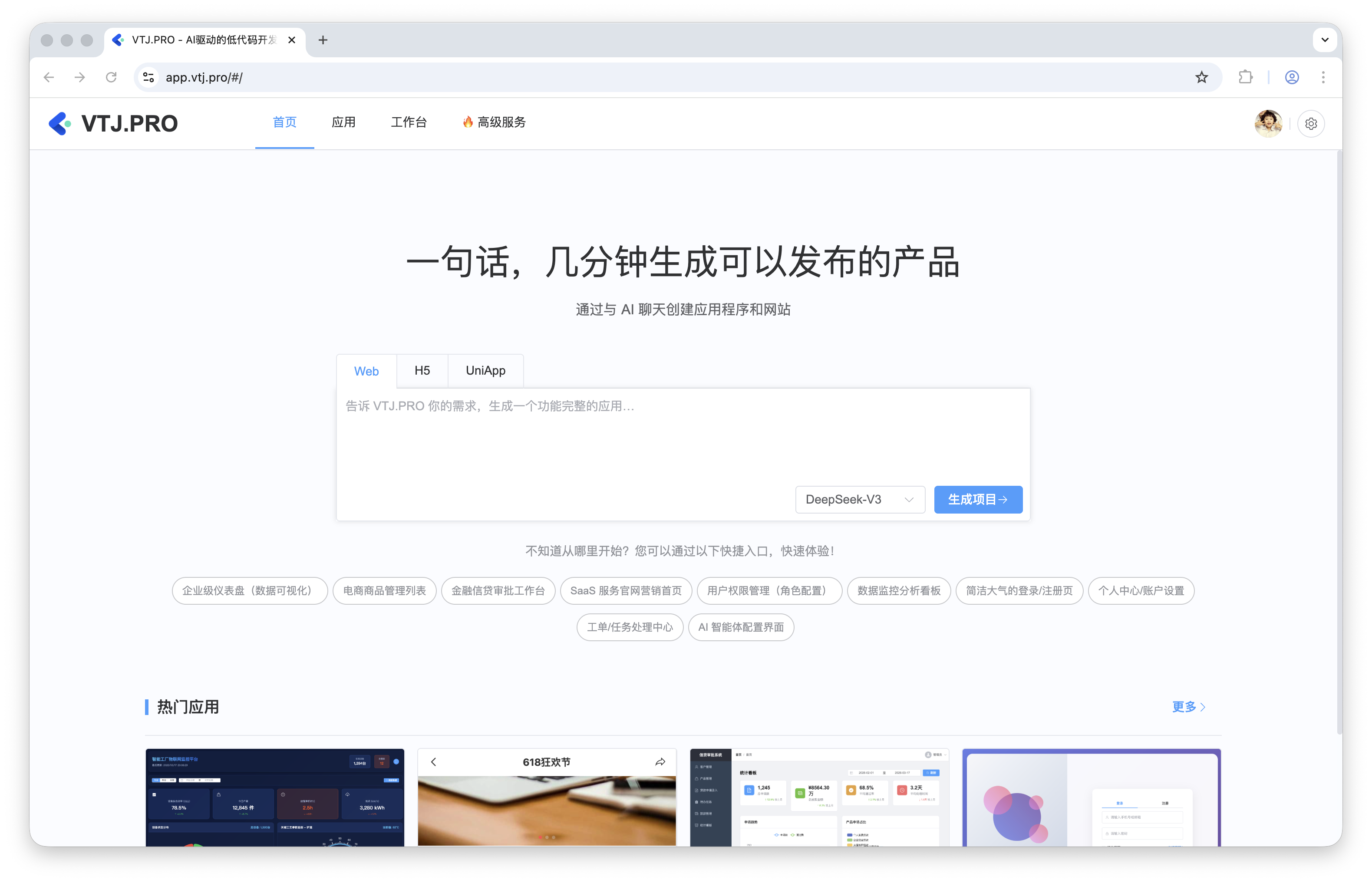 自 2.3.0 版本推出沉浸式 AI 驱动开发模式与应用广场以来,VTJ.PRO 始终秉持“代码可编辑、逻辑可洞察、平台可脱离”的核心设计哲学。v2.3.7 延续了这一理念,通过一系列精细化打磨,让企业级应用的品牌定制与团队协作更加自然流畅。