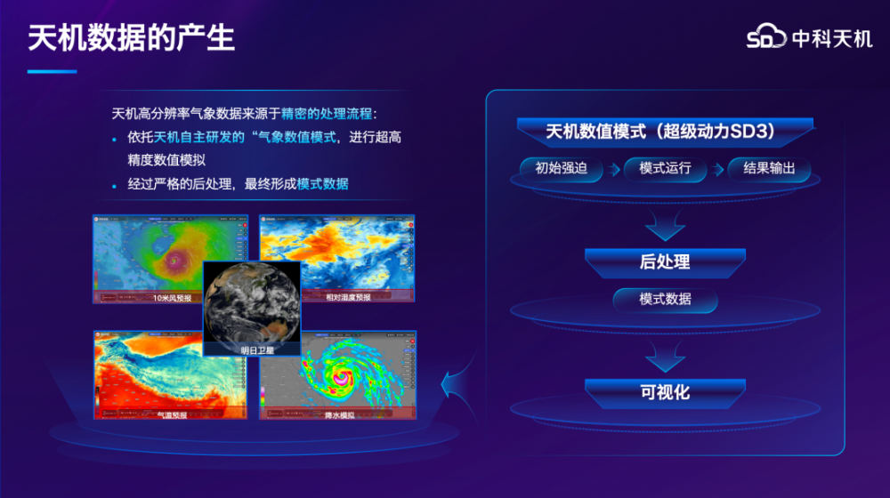 作为国内气象服务领域的领军者,中科天机始终坚持以“科学模式”和“数据分析”为核心。依托自主研发的“全球-区域一体化数值模拟系统”及SD3超级动力内核,中科天机能够提供高精度、高时效的气象数据产品。与传统依赖纯数据驱动的AI模型不同,天机的模式结合了严谨的物理过程描摹(如全物理过程的沙尘起沙到沉降模拟),从而在根源上降低了模拟的不确定性。