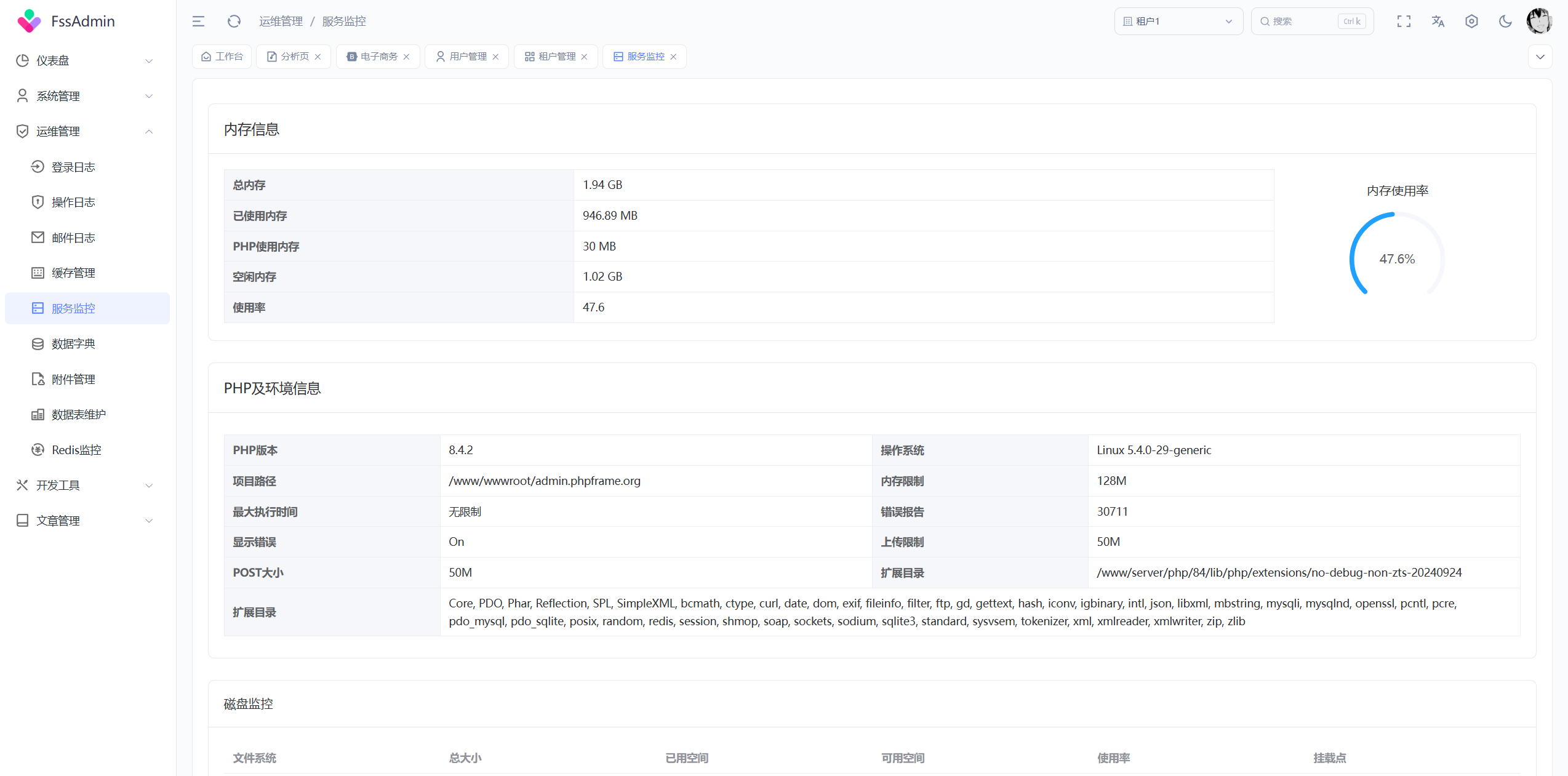 FSSADMIN 是一个基于FSSPHP 的现代化全栈框架,采用 Workerman 常驻内存引擎驱动,支持 多租户 SaaS 架构。项目包含: