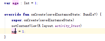 发现省去了 : Int 即 声明这个属性是什么类型的,也能编译通过,这就是Kotlin的特点,自动推导出该值是什么类型。