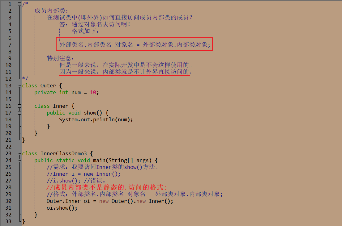 Java中,成员内部类的常见修饰符及应用 && 成员内部类不是静态的,访问的格式