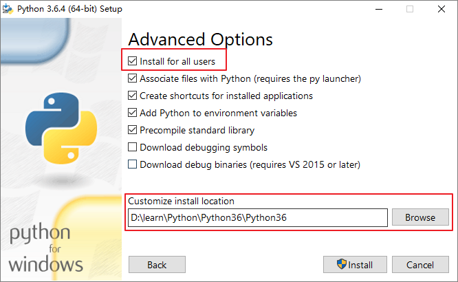 5、再下一步,记得勾选第一项,Install for all users, 然后选择自己的目录。