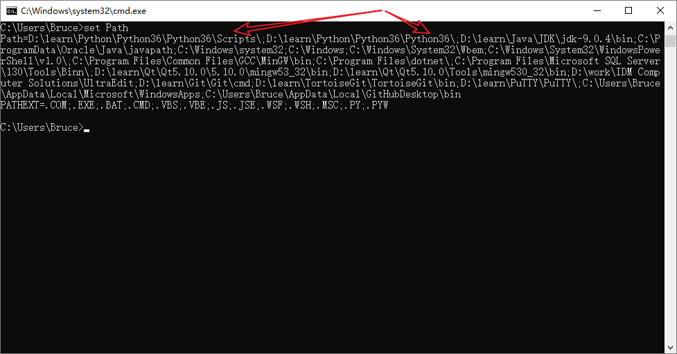 9、上一步验证失败的话可能就是环境变量没有设置好,继续在命令行里输入set Path,就打开了系统环境变量的Path变量,查看一下有没有Python的目录(如下图所示),如果没有,就只能手动去填加了(如下图所示)。
