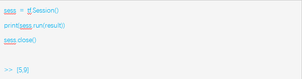 程序2描述了图的执行过程,首先通过“tf.session()”启动默认图模型,再调用run()方法启动、运行图模型,传入上述参数result,执行矩阵的加法,并打印出相加的结果,最后在任务完成时,要记得调用close()方法,关闭会话。