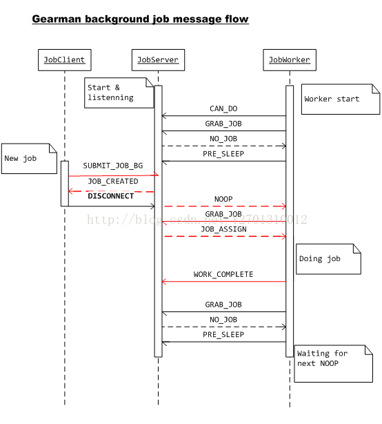 gearman的任务传递模式是一对一的,不能实现一对多,一个client通过job server最后只能够到达一个worker上。如果需要一对多,需要定义多个worker的function,依次向这些worker进行发送,非常的不方便。这一点就不如ZeroMQ,ZeroMQ支持的模式很多,能够满足各种消息队列需求。他们用在不同的场合,Gearman是分布式任务系统,而ZeroMQ是分布式消息系统,任务只需要做一次就行。