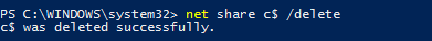 你要以Administrator身份開啟Powershell , 鍵入Net share c$ /delete (假設你是分享了C:\ )