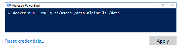 Docker Shared Drive版面上有"Reset Credentials"的功能