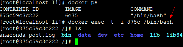 docker exec -t -i 875c /bin/bash