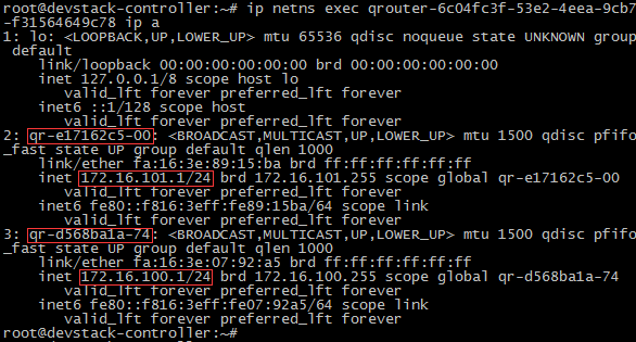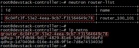 router 对应的 namespace 命名为 qrouter-<router id>。