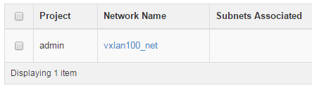 点击 vxlan100 链接,进入 network 配置页面,目前还没有 subnet,点击 “Create Subnet” 按钮。
