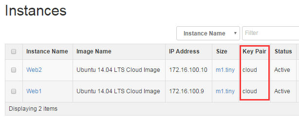 与以前的 instance 不同,Web1 和 Web2 使用了命名为“cloud”的 Key Pair。