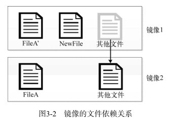 镜像的本质是磁盘上一系列文件的集合,创建新的镜像其实也就是对已有镜像文件的增删查改。但镜像之间并不是孤立,而是存在单向的文件依赖关系,如下图中,镜像1的FileA是镜像2FileA的修改版本,NewFile是新创建的文件,其他文件则全部引自镜像2