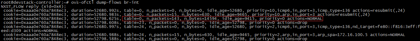 cookie=0xaaa0e760a7848ec3, duration=52798.625s, table=0, n_packets=143, n_bytes=14594, idle_age=9415, priority=0 actions=NORMAL