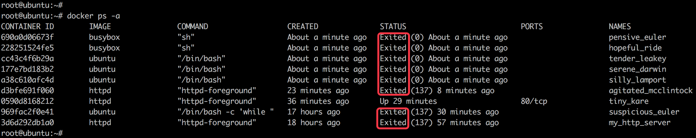 使用 docker 一段时间后,host 上可能会有大量已经退出了的容器。