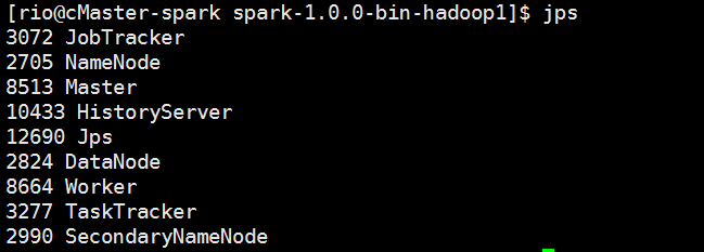 然后打开你的hadoop集群和spark集群,用jps查看一下。