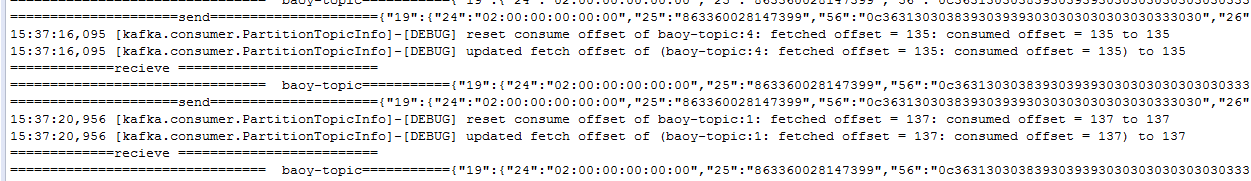 15.安装kafka cd /usr/local/ wget http://mirror.bit.edu.cn/apache/kafka/0.10.0.0/kafka_2.10-0.10.0.0.tgz tar xf kafka_2.10-0.10.0.0.tgz ln -s /usr/local/kafka_2.10-0.10.0.0 /usr/local/kafka chown -R hdfs:hadoop /usr/local/kafka_2.10-0.10.0.0 /usr/local/kafka chown -R root:root /usr/local/kafka_2.10-0.10.0.0 /usr/local/kafka /usr/local/zookeeper/bin/zkCli.sh create /kafka '' vim /usr/local/kafka/config/server.properties broker.id=0 zookeeper.connect=dev10.aoiplus.openpf:2181,dev06.aoiplus.openpf:2181,dev05.aoiplus.openpf:2181/kafka scp -r /usr/local/kafka_2.10-0.10.0.0.tgz root@dev05.aoiplus.openpf:/usr/local/ scp -r /usr/local/kafka_2.10-0.10.0.0.tgz root@dev06.aoiplus.openpf:/usr/local/ scp -r /usr/local/kafka/config/server.properties root@dev05.aoiplus.openpf:/usr/local/kafka/config/server.properties scp -r /usr/local/kafka/config/server.properties root@dev06.aoiplus.openpf:/usr/local/kafka/config/server.properties master slave 启动 /usr/local/kafka/bin/kafka-server-start.sh /usr/local/kafka/config/server.properties & 创建topic /usr/local/kafka/bin/kafka-topics.sh --create --zookeeper dev10.aoiplus.openpf:2181,dev06.aoiplus.openpf:2181,dev05.aoiplus.openpf:2181/kafka --replication-factor 3 --partitions 5 --topic baoy-topic /usr/local/kafka/bin/kafka-topics.sh --describe --zookeeper dev10.aoiplus.openpf:2181,dev06.aoiplus.openpf:2181,dev05.aoiplus.openpf:2181/kafka --topic baoy-topic /usr/local/kafka/bin/kafka-console-producer.sh --broker-list dev10.aoiplus.openpf:9092,dev05.aoiplus.openpf:9092,dev06.aoiplus.openpf:9092 --topic baoy-topic /usr/local/kafka/bin/kafka-console-consumer.sh --zookeeper dev10.aoiplus.openpf:2181,dev05.aoiplus.openpf:2181,dev06.aoiplus.openpf:2181/kafka --from-beginning --topic baoy-topic