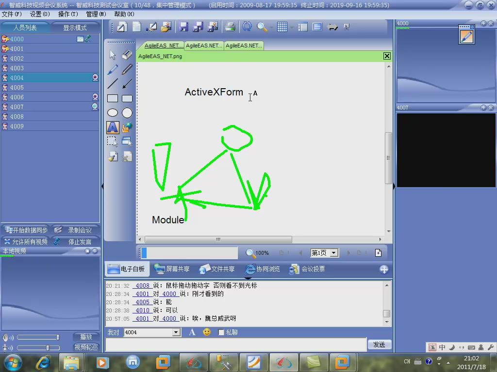 之前我给大家发布了一个基于AgileEAS.NET平台并且使用了SOA/SAAS方案的一个小应用,很多朋友下载了但反馈学不知道怎么配,在之前,我写了AgileEAS.NET平台开发实例-药店系统-快速的SAAS开发体验、应用SAAS结构技术的开源药店管理系统-如何自己部署这种SOA/SAAS结构的在文中纤细的说了如何在线试用和下载源代码之后的配置过程,但可以有些抱歉,可能是我们的配置指导和文档写的并不那么明确和完善,上一周在QQ群和大家交流的过程之中,有一位朋友建议,可不可以搞在在线的视频培训,然后大家都讨论怎么实施方案,原定于在星期天晚上进行第一次培训,我尝试使用Live Meeting 但没有搞成功,之同由我的客户也是我的朋友兰州智威科技给我们提供了视频会议系统进行在线培训。