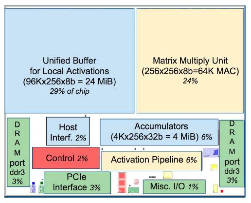 下图给出了TPU芯片的布局,可以粗略看出各部分面积的比例。