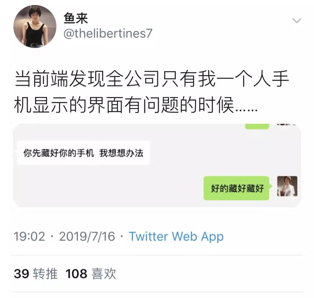 @Tuco :就刚才,有个老项目要修改一点需求。于是开始读相关代码,哪知越看越惊!这是谁写的代码?怎么考虑的如此周到细致?他的思路,覆盖了我所有的质疑、挑剔,无懈可击嘛。。。公司有个这样的人才,我怎么一直都不知道?不行,我一定要看看这是谁写的。于是我翻看了日志,顿时一碰冷水浇了下来:这特么就是我自己写的。。。