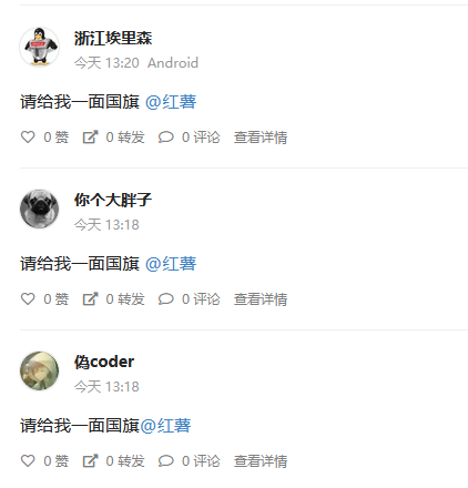 @ 罗马的王 (哈哈哈哈哈 大王好)@ zxl78585 (对)@落青 (哈?)@ 夏目Jane (是呀 ……哈哈哈哈哈哈哈)@ 蓝瞳 (打赏三个钢镚啊~)@ 学学无止境 (哇哈哈哈哈)@ Soi (哈哈哈哈哈哈哈哈哈我给你打的哈哈 比他们都长……)@ 我想有个家 (啥?)@ clouddyy (那么早上好,早上到底好不好呢?)@ 扯淡的鱼 (+1)@ 张健云 (同意)@ lottepie (早哇)@ 凉小生 (一点也不饿)@ heike07(早晨)@ 机器人-1(+1)@ 莱布妮子 (+1)