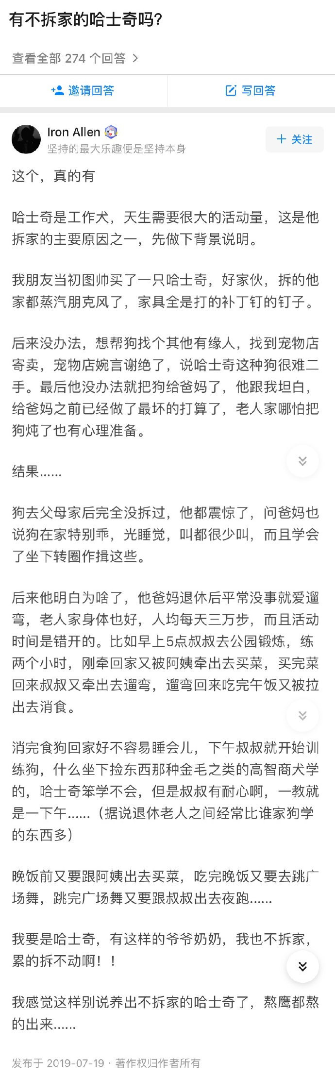 “哈士奇不拆家是因为老太累了,你恋家是因为你不爱上班!”