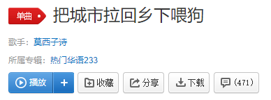 @ 这次装个文艺青年吧 :#今日歌曲推荐# 分享莫西子诗的单曲《把城市拉回乡下喂狗》: